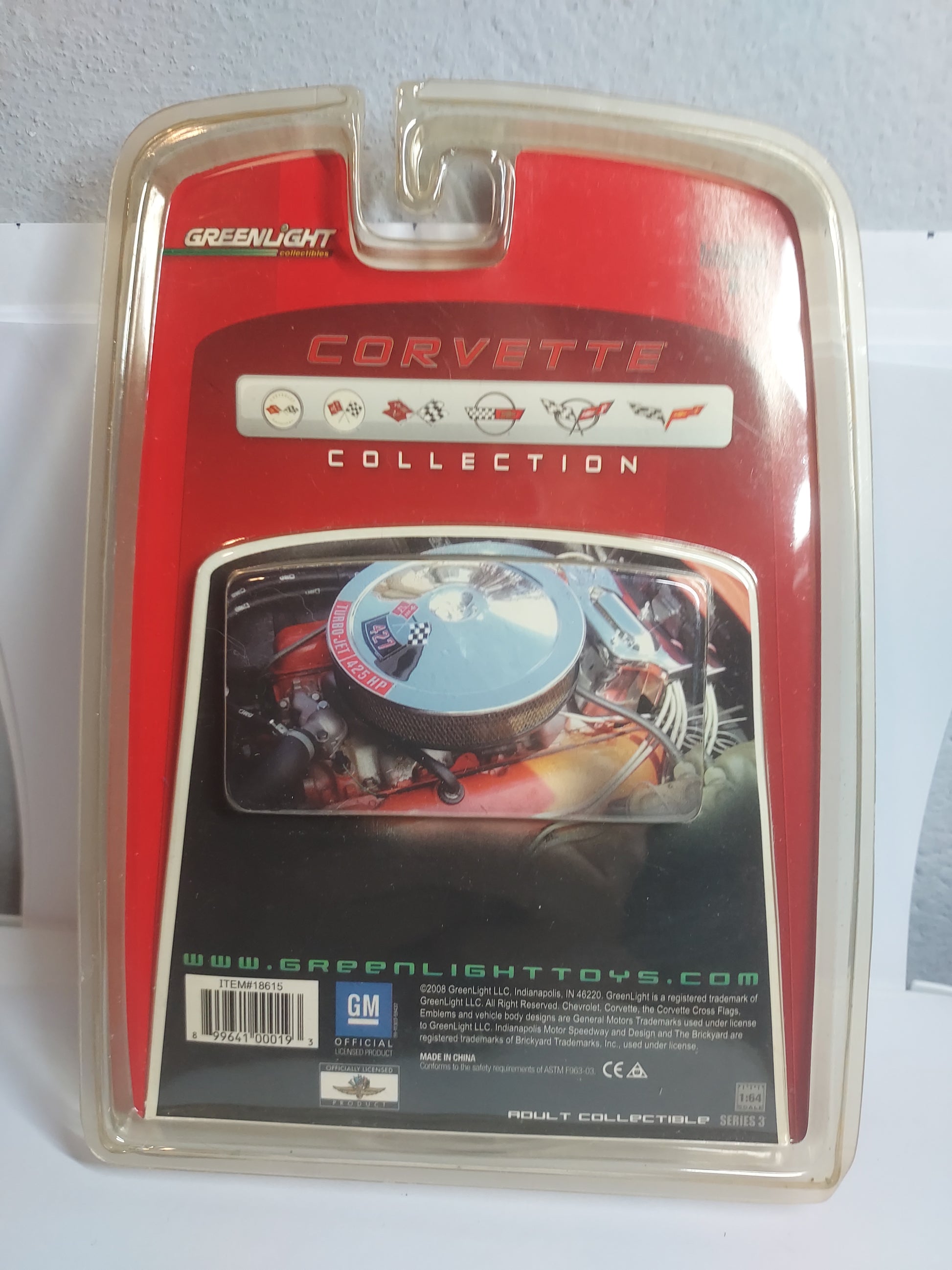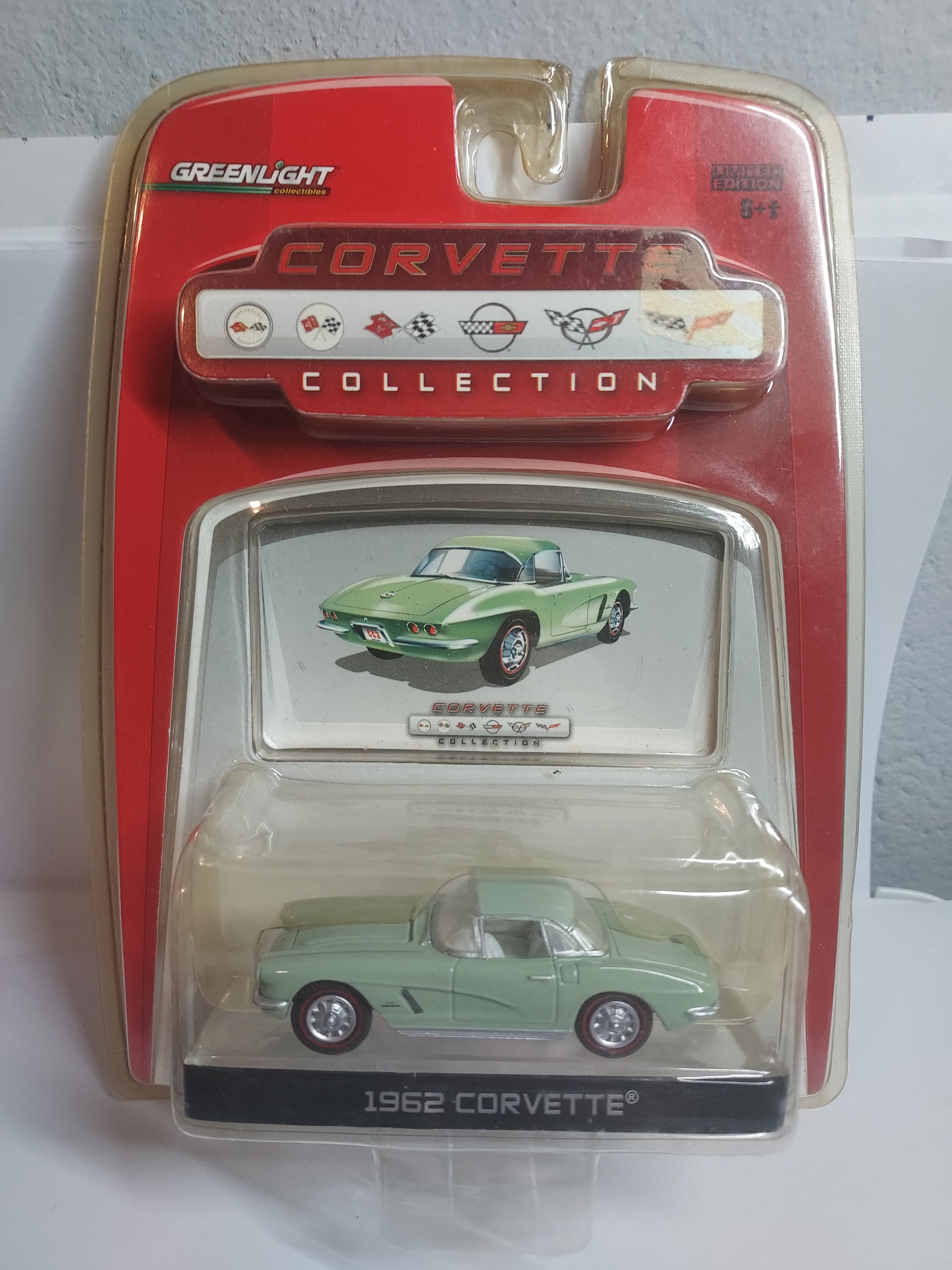 El producto en la imagen es un coche de juguete de la "Corvette Collection" de Greenlight, que representa un 1962 Corvette de color verde claro.