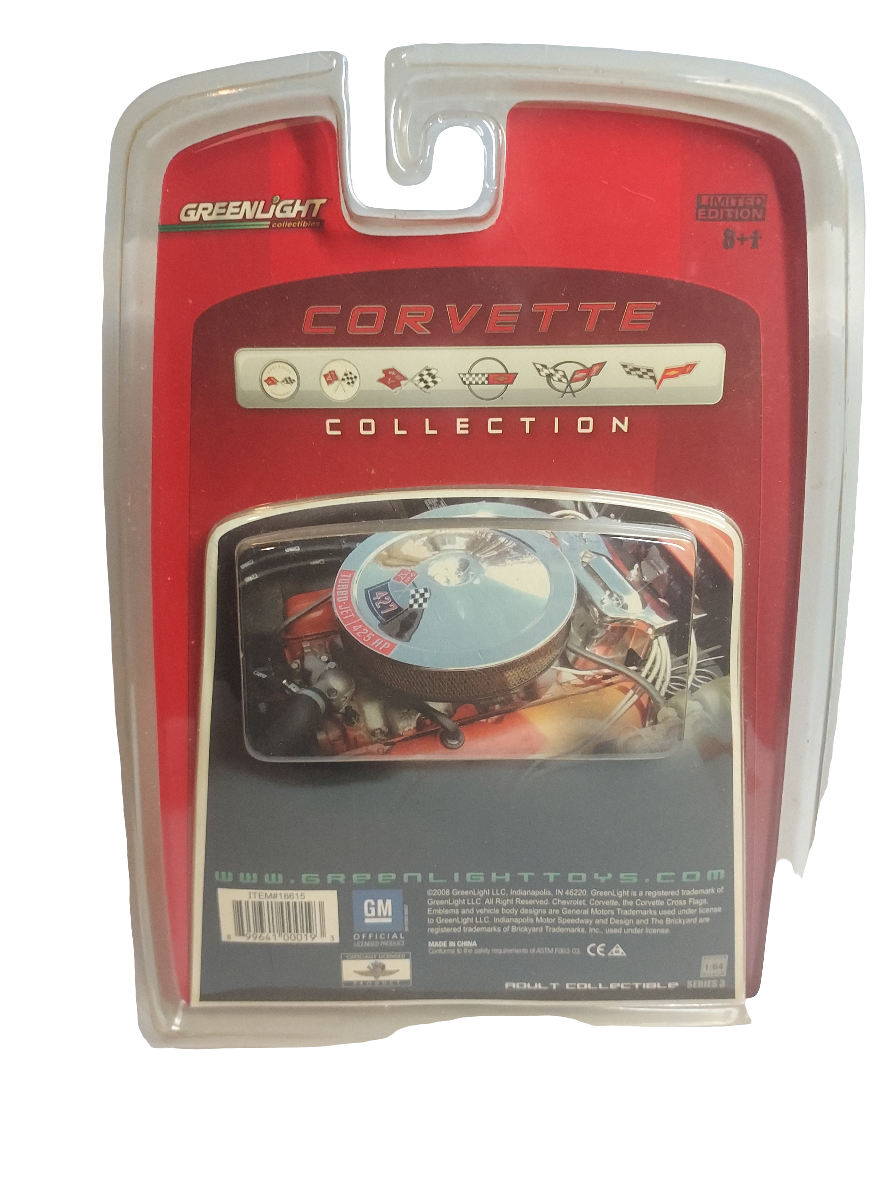 Es un coche de juguete a escala de la marca Greenlight, un modelo "1962 Corvette Racecar" de la colección Corvette. Este modelo es una réplica del Chevrolet Corvette de 1962, que fue el último año de la primera generación (C1) del Corvette.
