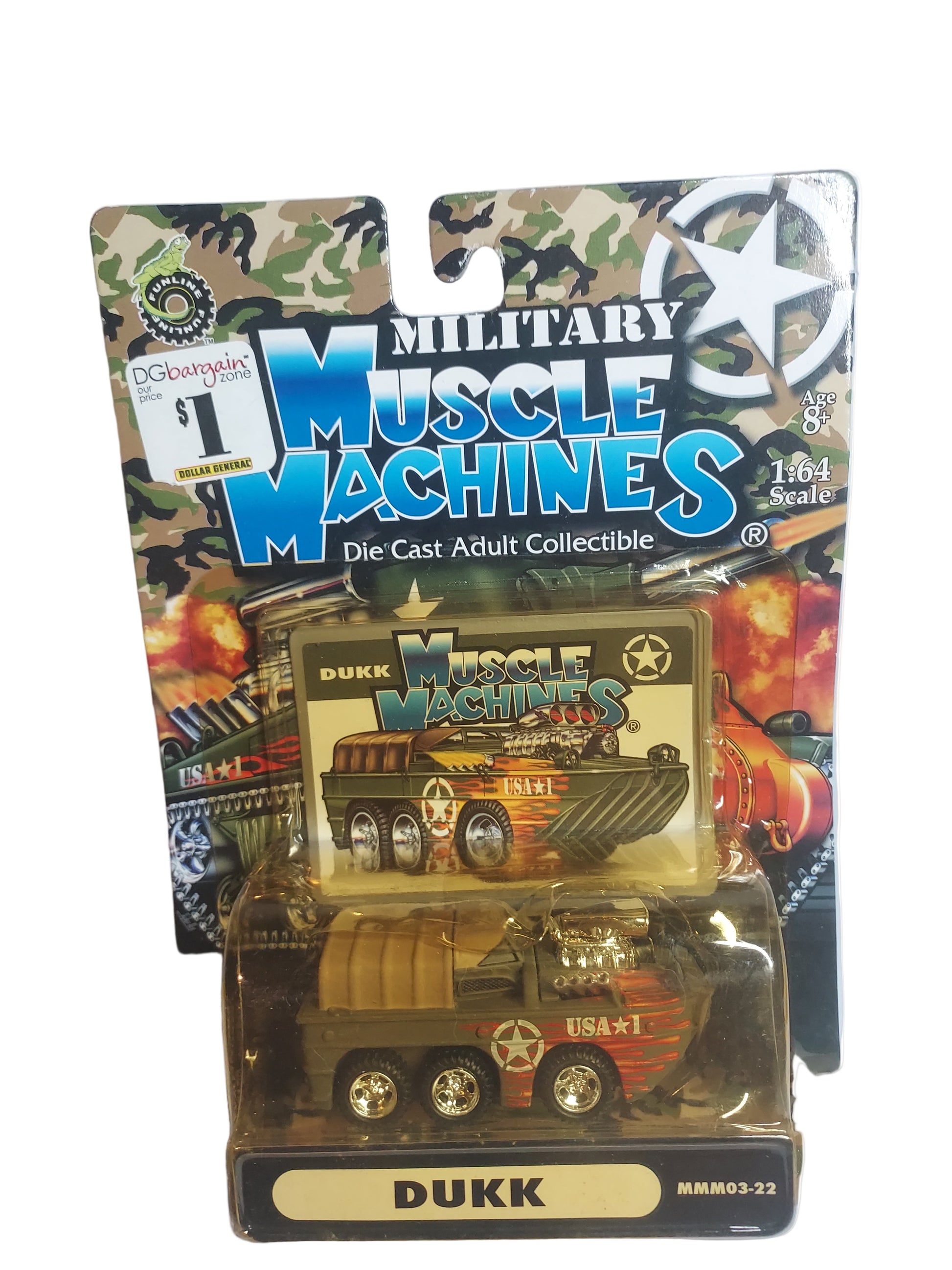 - Es un vehículo de juguete de la línea "Military Muscle Machines" de la marca Funline. Este modelo en particular se llama "DUKK", es un coleccionable para adultos de fundición a presión y está a escala 1:64.