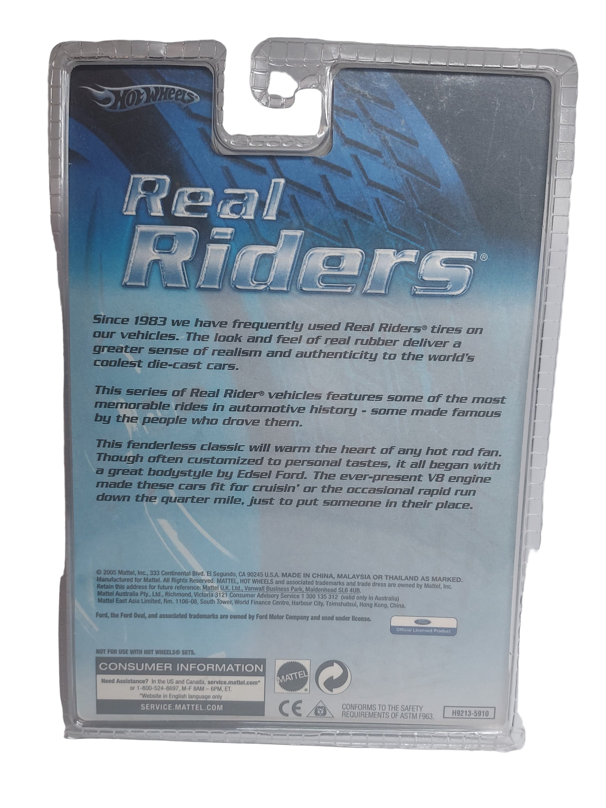 Pertenece a la serie Hot Wheels Real Riders, que se distingue por sus ruedas con neumáticos de goma realistas y luce un impresionante diseño tricolor.