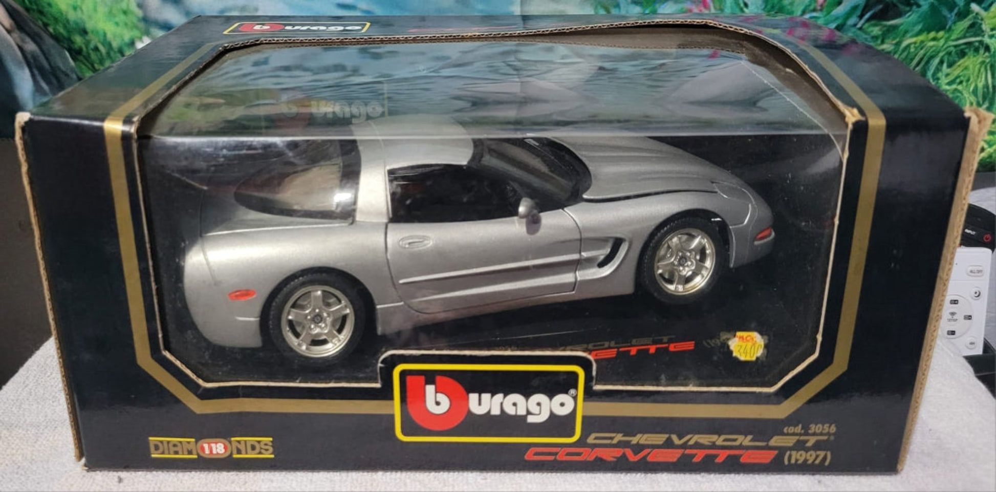 Este es un modelo a escala 1/18 de un Chevrolet Corvette de 1997, fabricado por Bburago, código 3056.