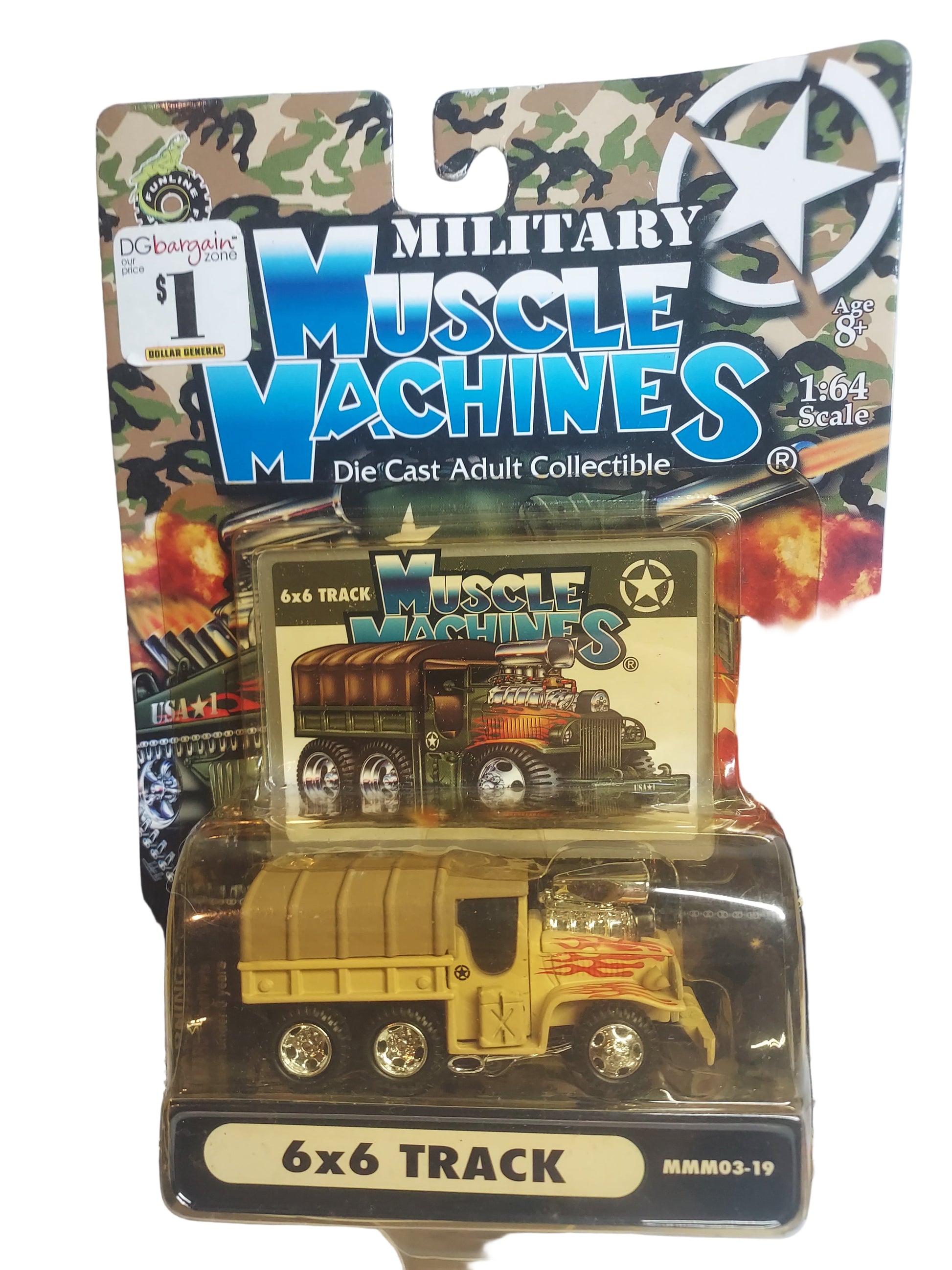 Es un vehículo de juguete coleccionable de la serie "Military Muscle Machines" de Maisto, en concreto el modelo "6x6 TRACK" (MMM03-19).