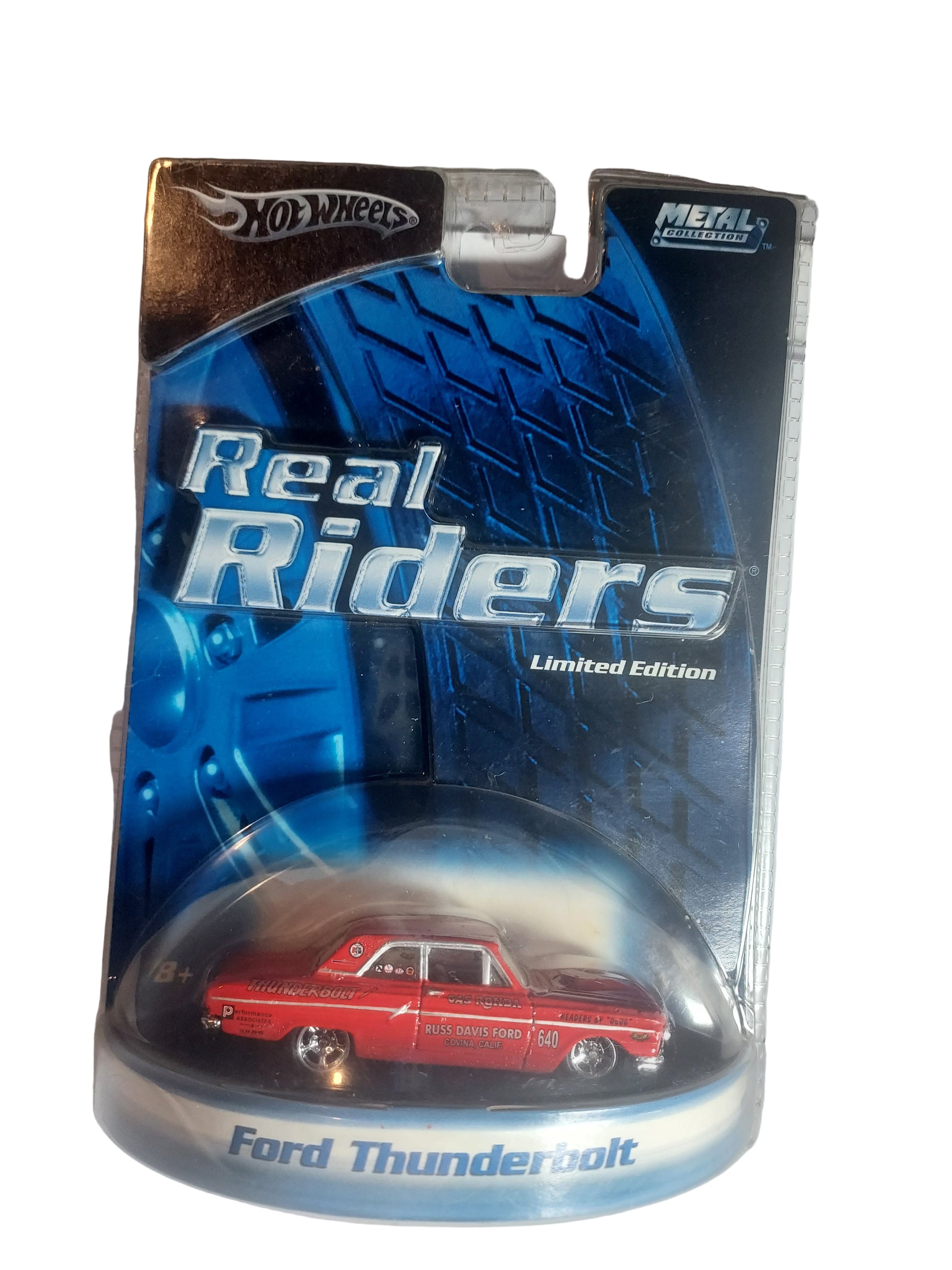 Es un coche de juguete Hot Wheels Ford Thunderbolt, parte de la serie "Real Riders" de edición limitada.