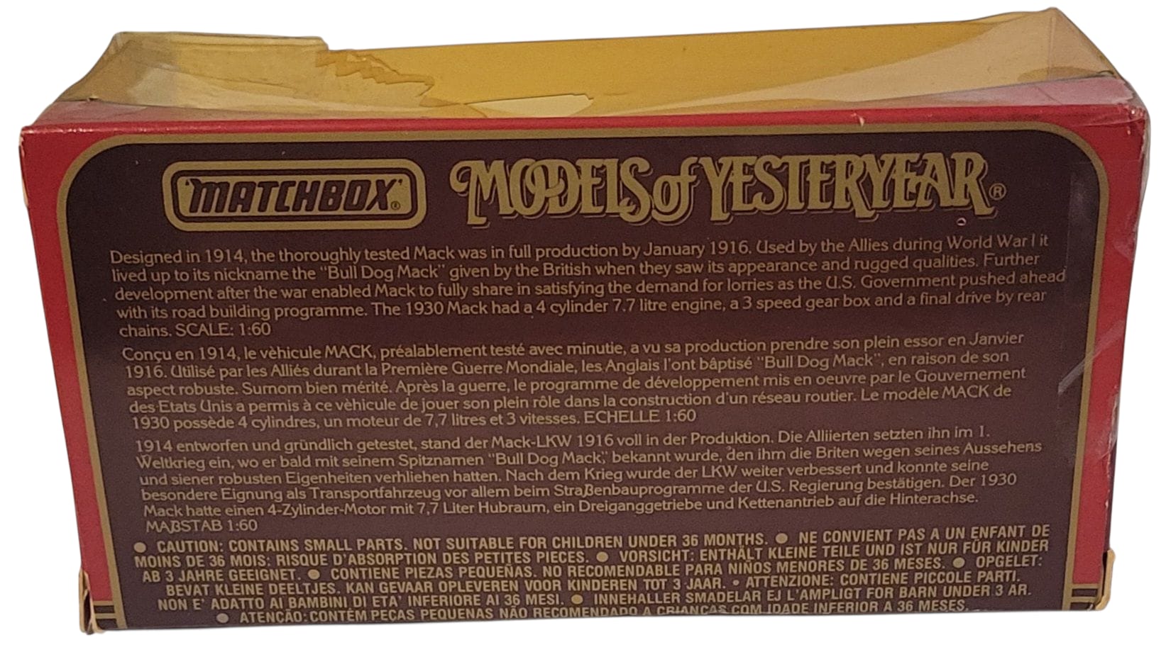 - Pertenece a la serie "Models of Yesteryear" de Matchbox, conocida por sus modelos a escala de vehículos antiguos.