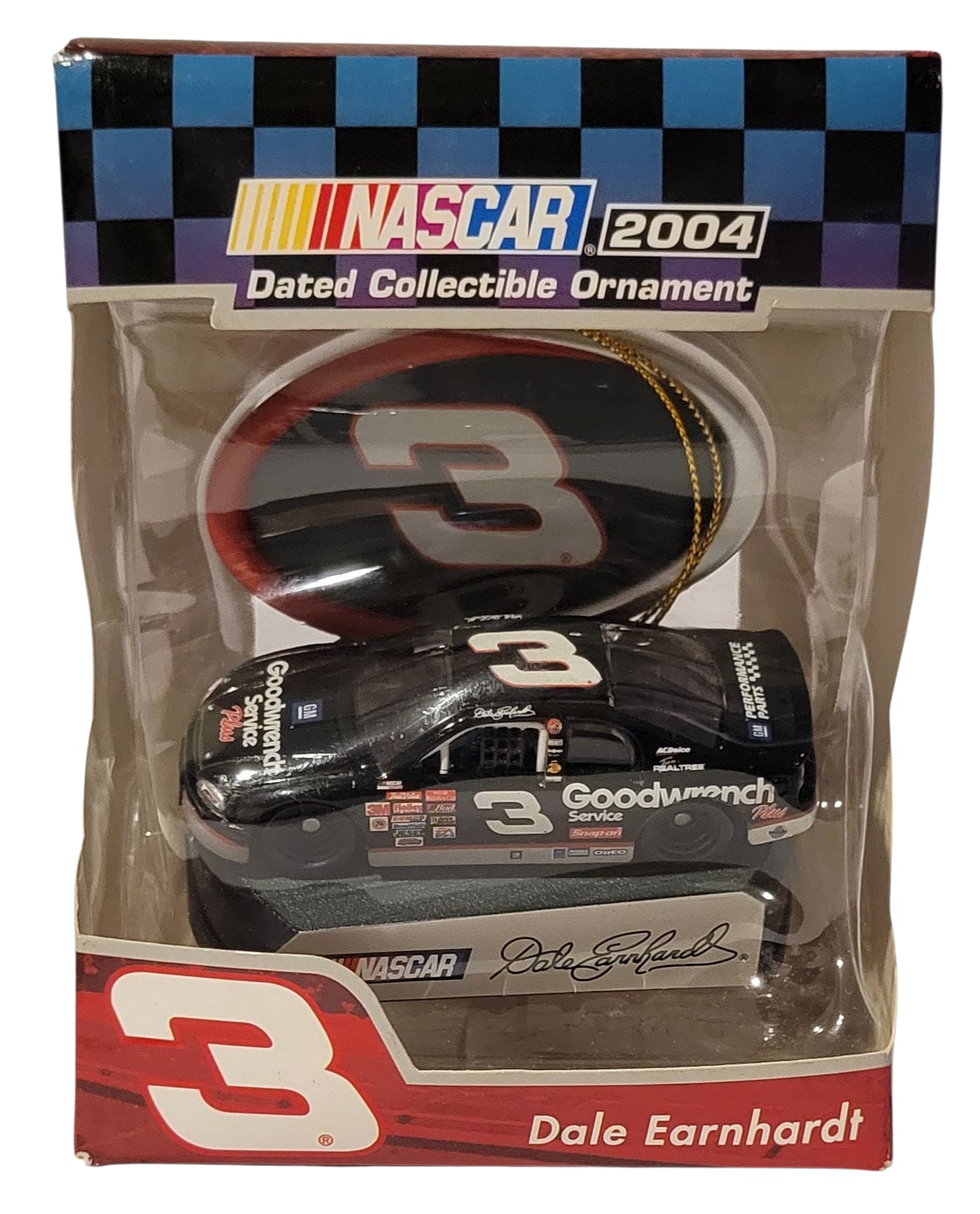 Adorno coleccionable del legendario Dale Earnhardt con su icónico auto #3 Goodwrench Service. La edición 2004 incluye un adorno adicional con el número 3.