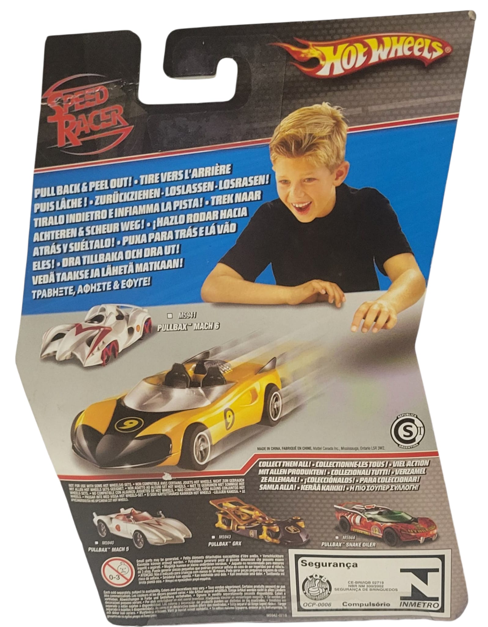 - Forma parte de la serie Hot Wheels Speed Racer Pullbax y presenta el icónico diseño del personaje Racer X.