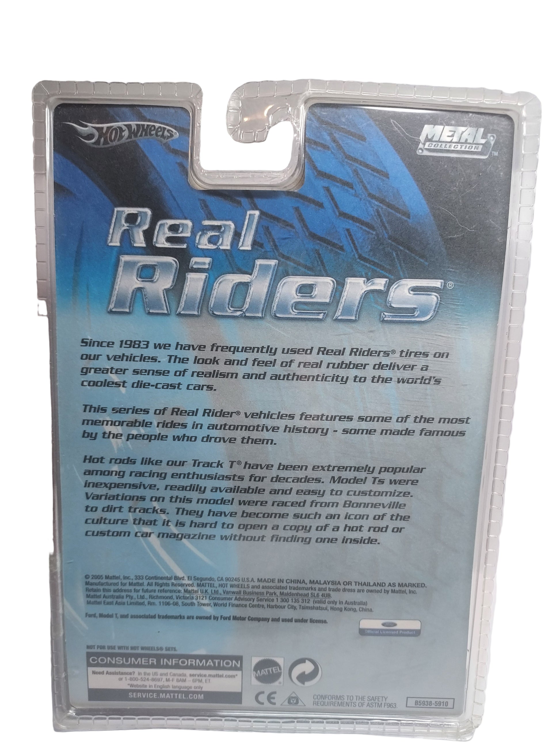El concepto "Real Riders" fue desarrollado para atraer a los coleccionistas adultos. El modelo "Track T" es una representación de un coche de carreras de un solo asiento.